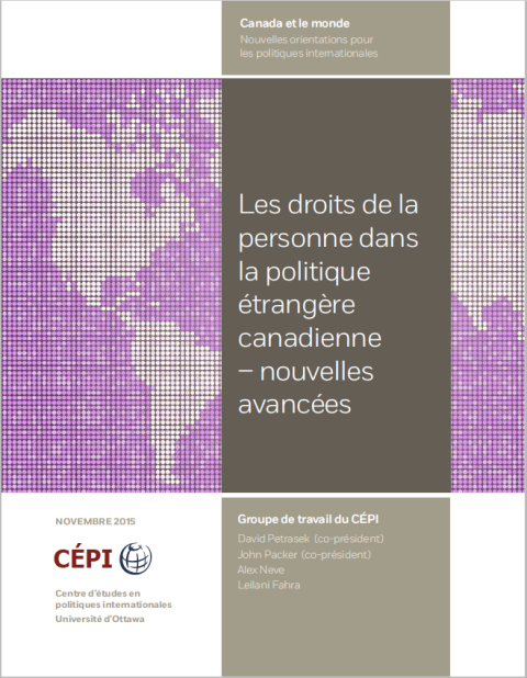 Un nouveau gouvernement canadien a été élu. Comment le Canada peut-il promouvoir les droits de la personne à travers ses politiques étrangères? Comment le Canada peut-il contribuer aux efforts globaux de la protection des droits humains? Le CÉPI a convoqué un groupe de travail composé d’experts spécialisés en politique et leur a posé ces questions.